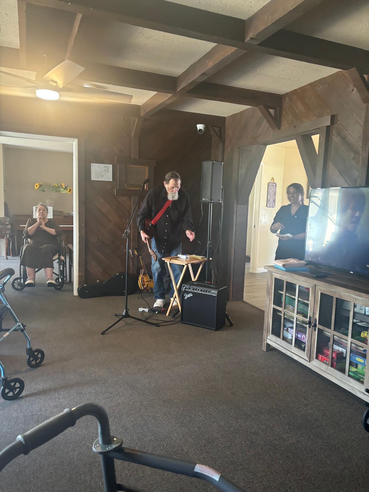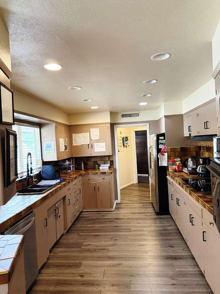 Spacious backyard is used by residents for gardening or simply enjoying the sunshine with their family during visits. Large oak trees surround the property with majestic views. Join us for a life filled with warmth, dignity and a peace of mind.